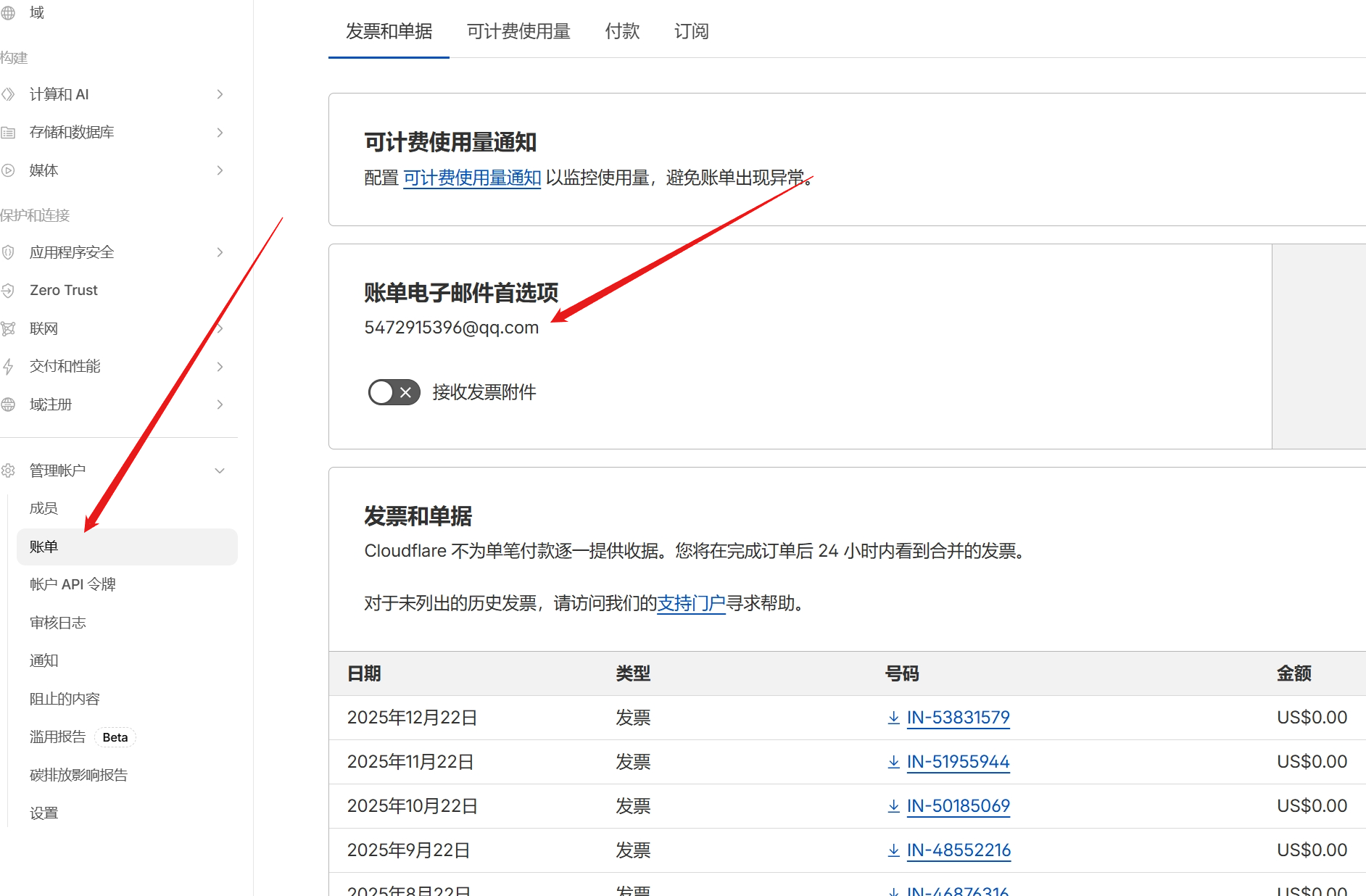3.点击账单,并复制自己的邮箱账号